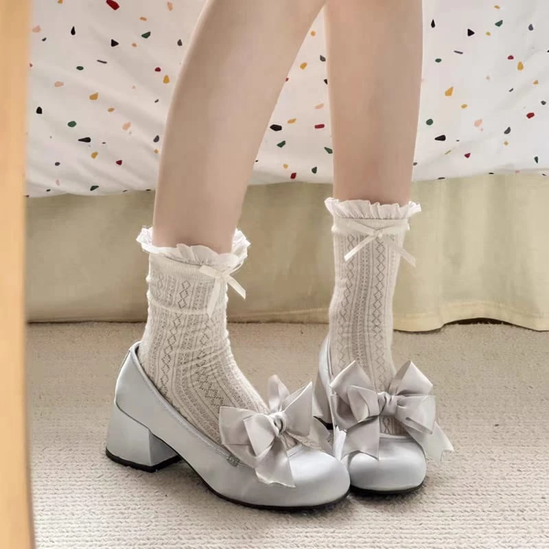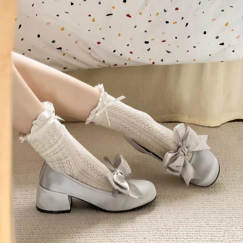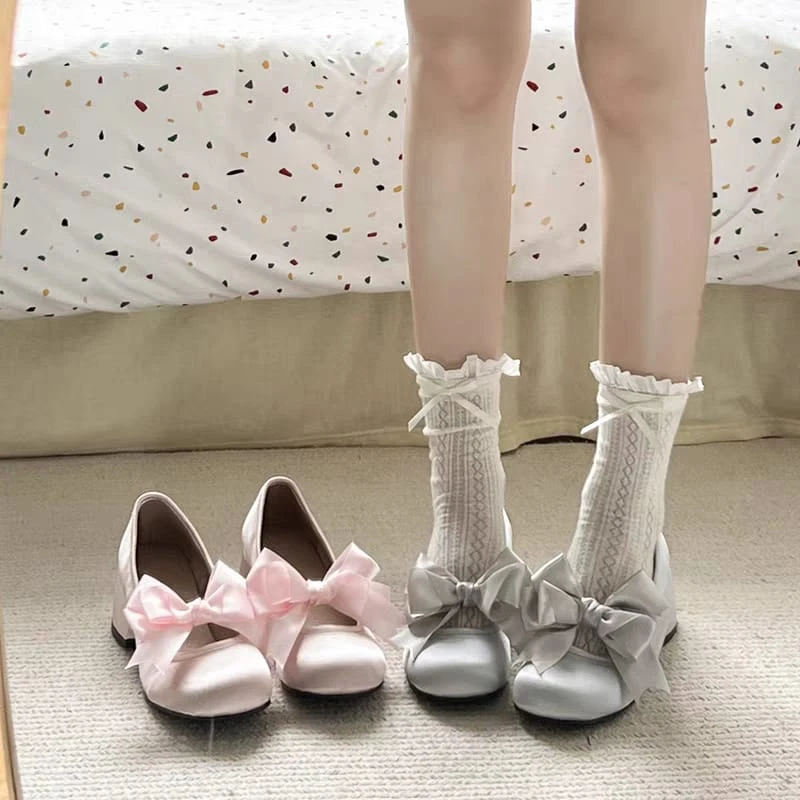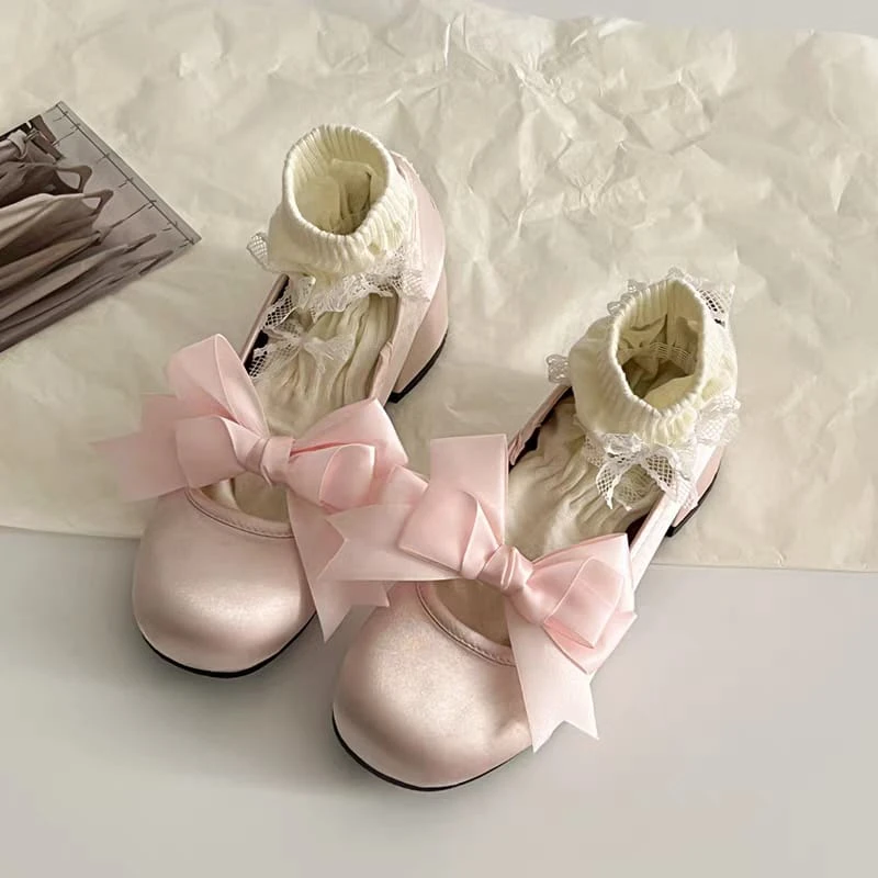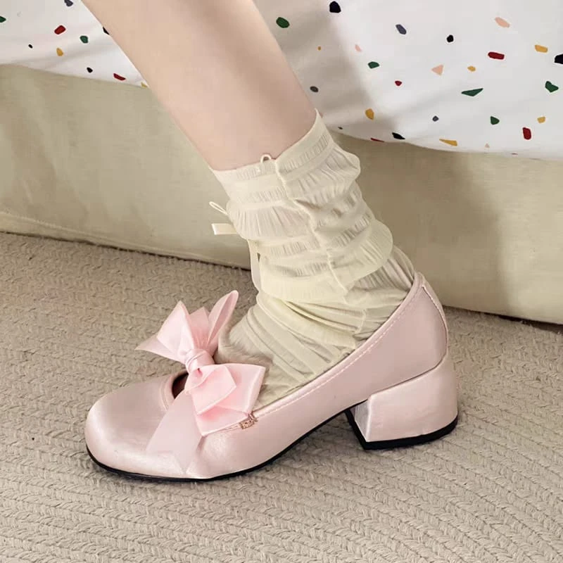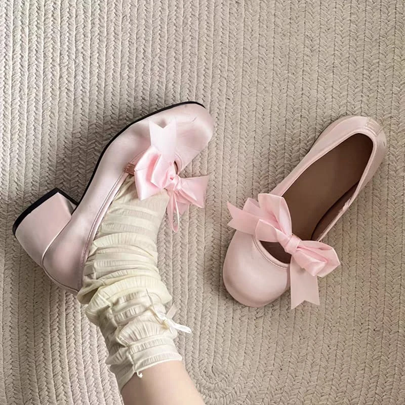 Guillerminas de raso con moño de tela