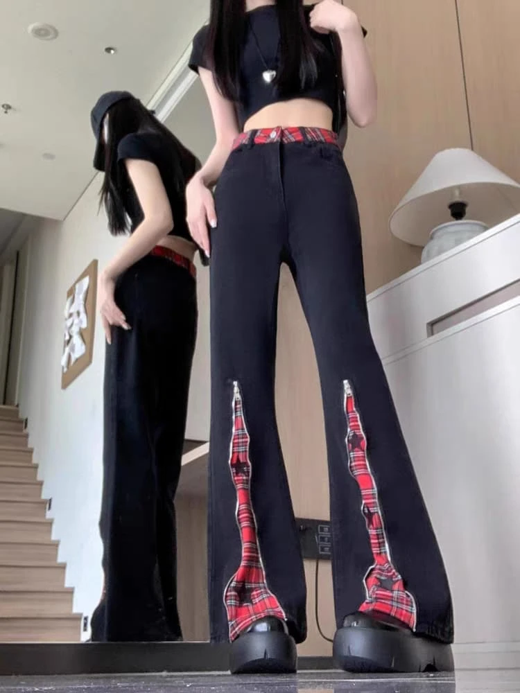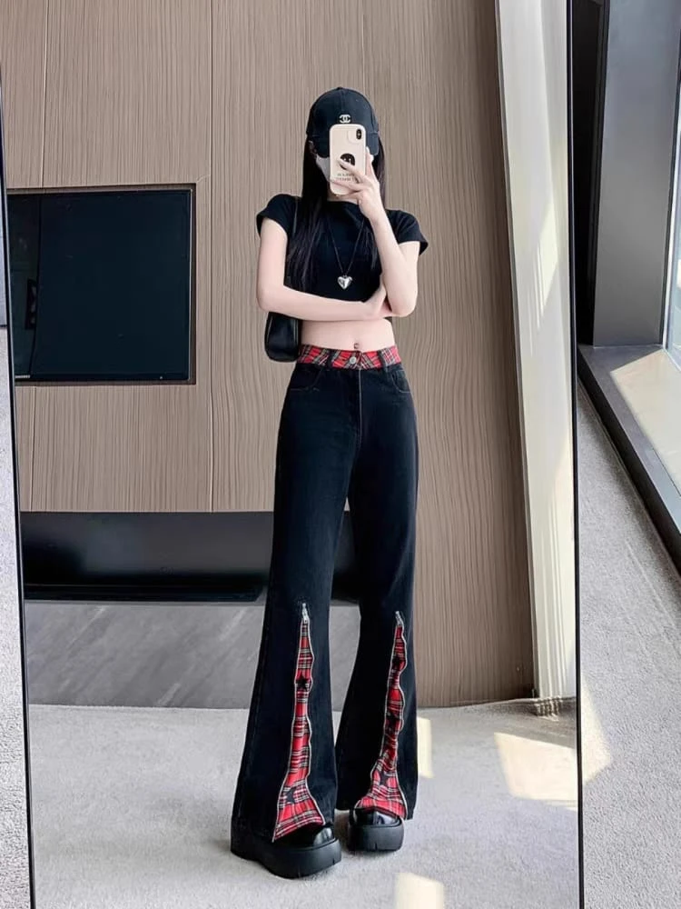 Pantalón jean con estampa escocés