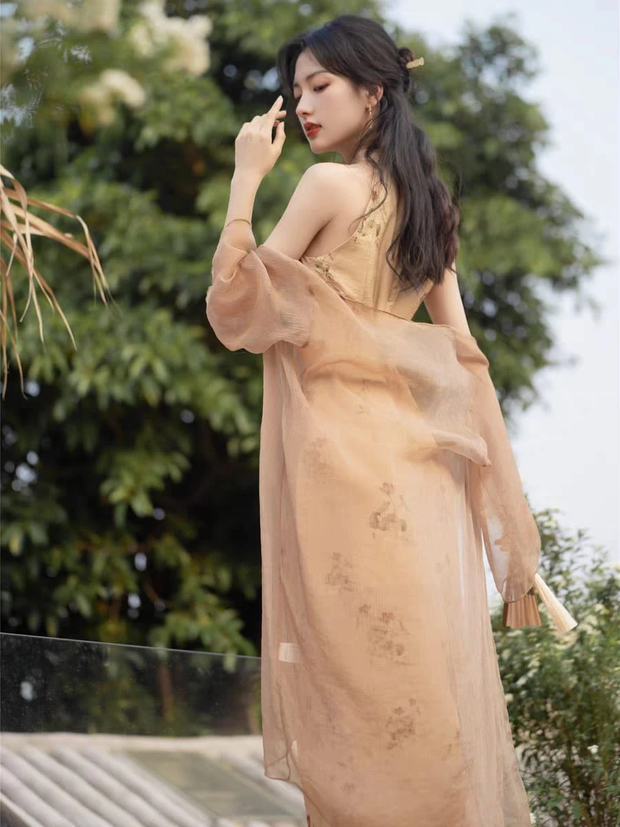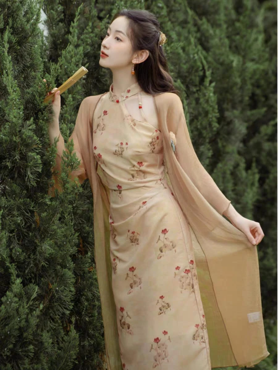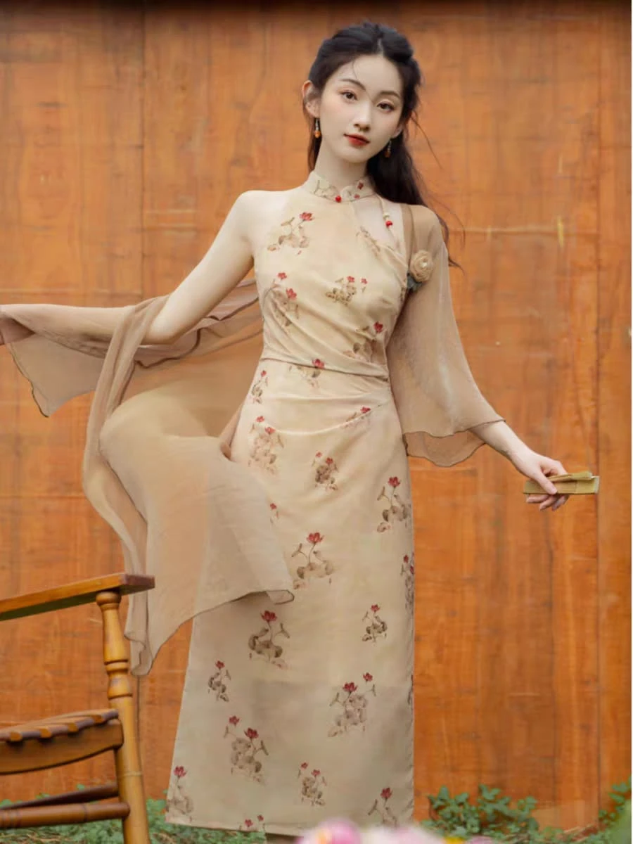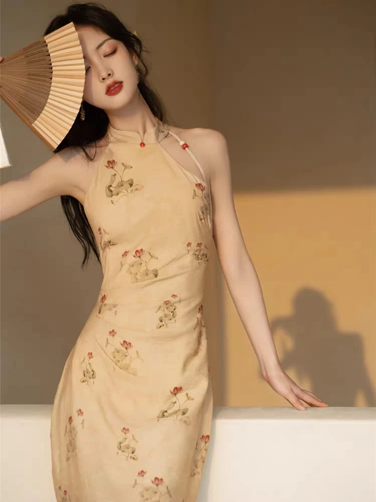 Qipao sin mangas beige