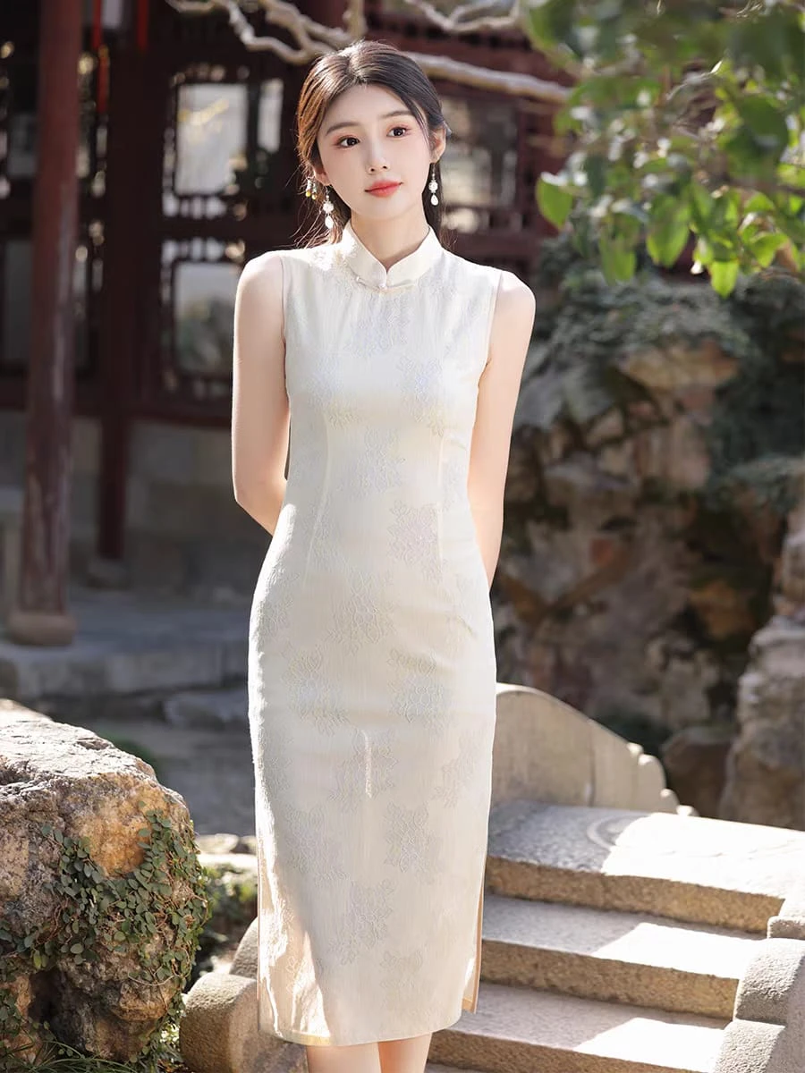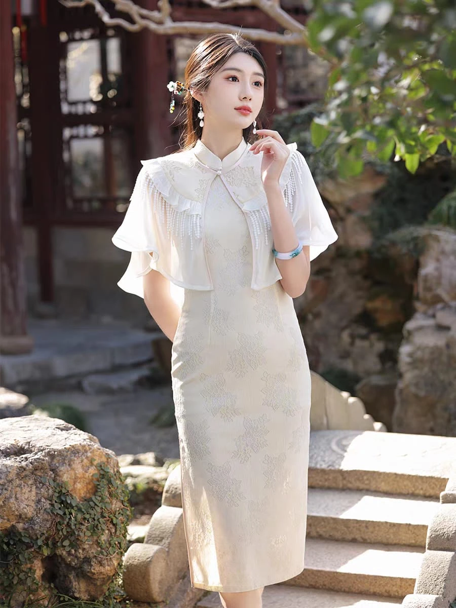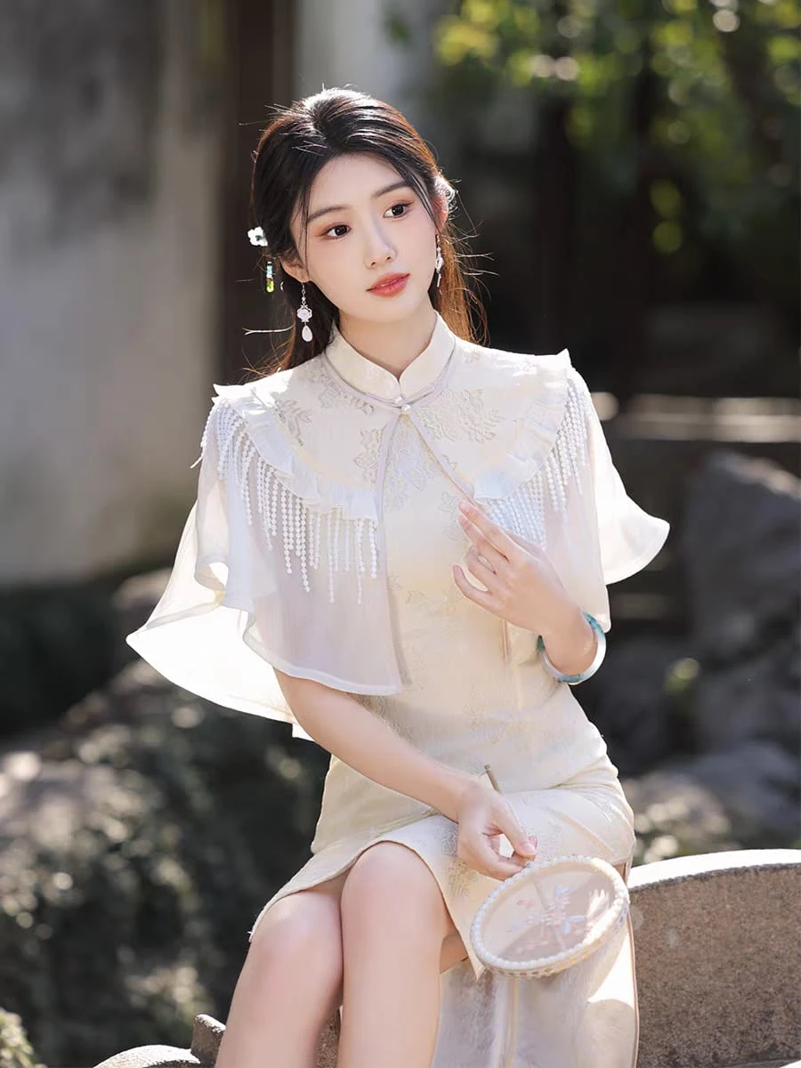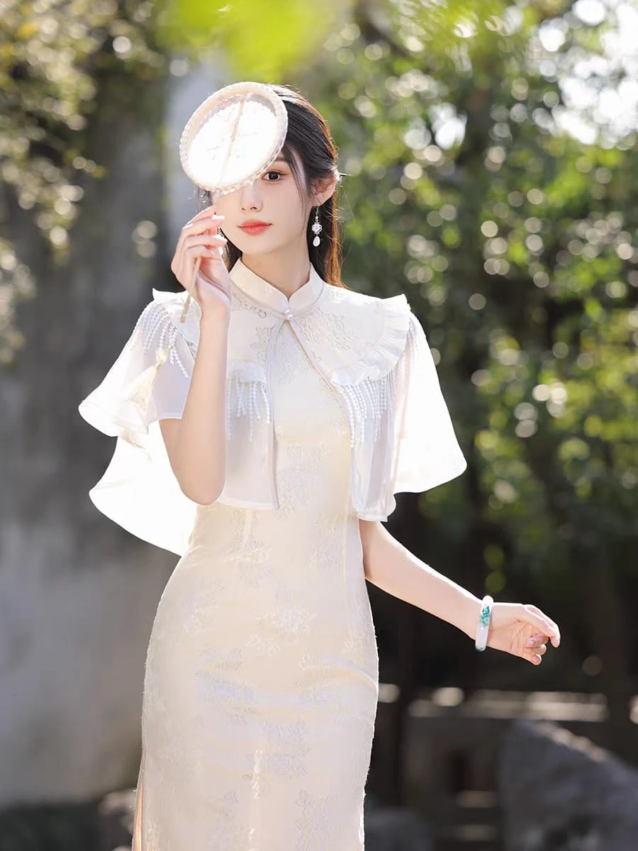 Qipao sin mangas con capa de tul