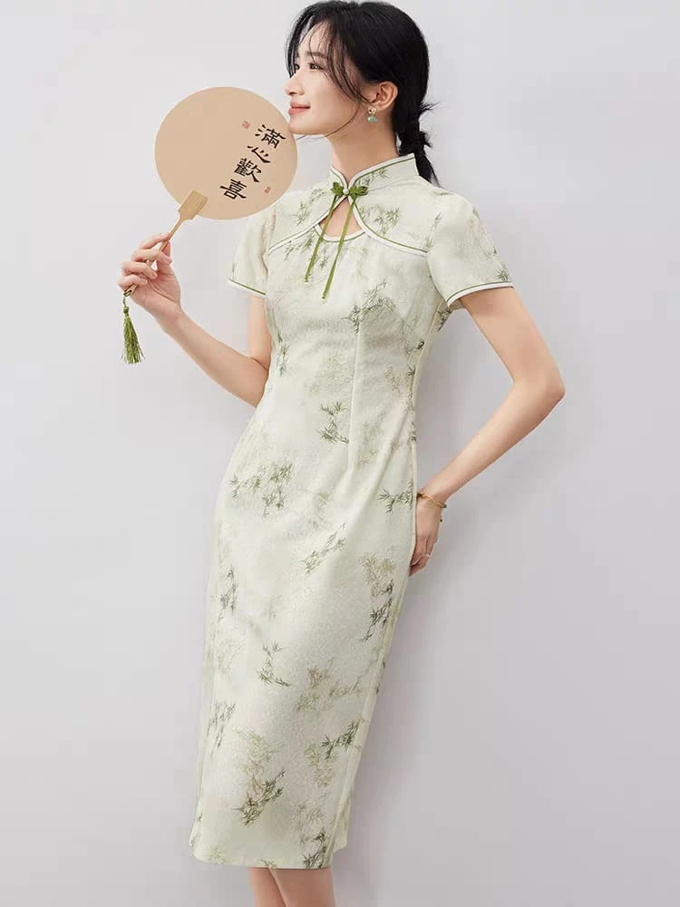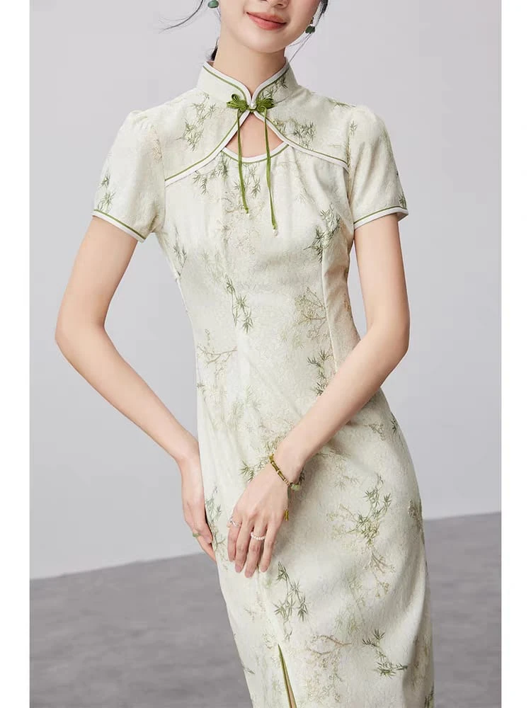 Qipao verde con hojitas