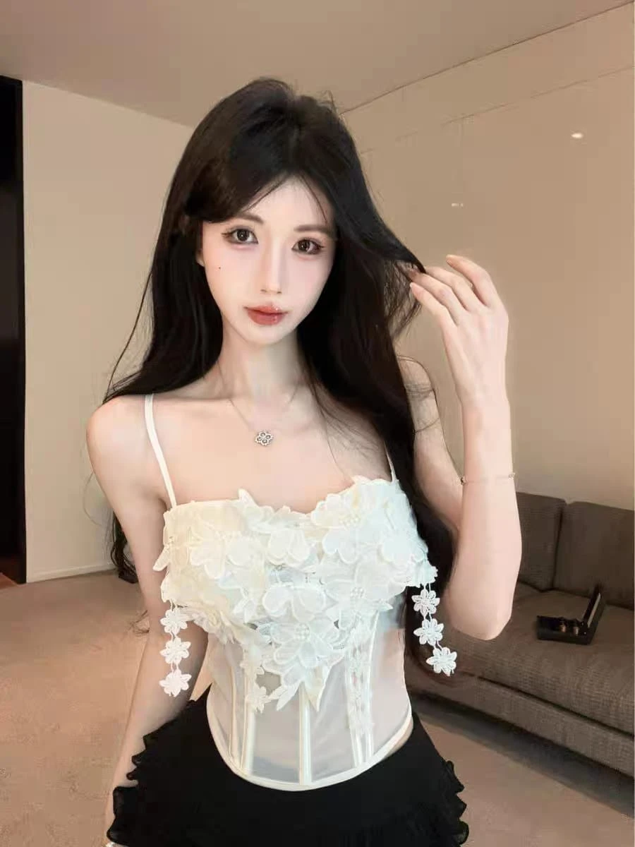 Top corset flores bordadas