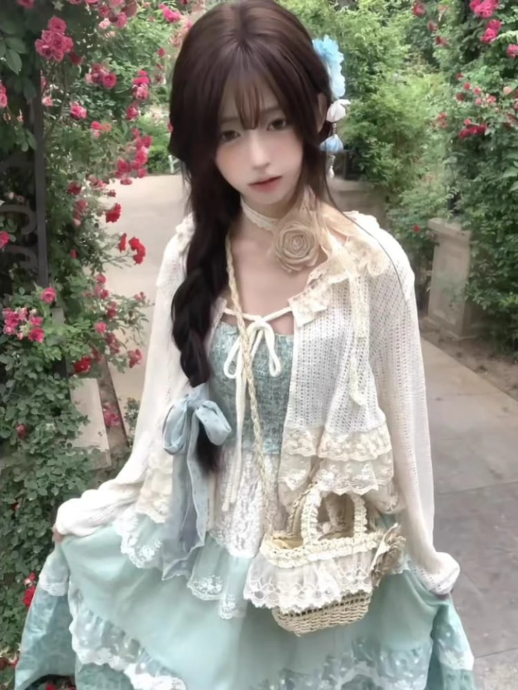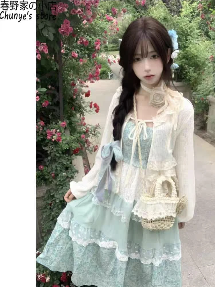 Vestido largo verde pastel y celeste
